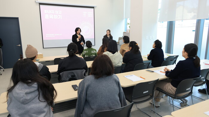 경기 과천시 육아종합지원센터가 최근 영유아의 건강한 성장과 행복한 양육을 돕기 위한 부모 교육을 실시했다. 교육은 갈현동 행정복지센터에서 ‘화내지 않고 훈육하기’라는 주제로 진행됐다. 사진은 교육에 참석한 신계용 과천시장이 인사말을 하고 있는 모습. (사진=과천시청 제공)