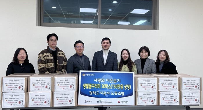 [평택=오왕석 기자] 평택도시공사 노동조합(위원장 이정현)은 지난 26일 연말을 맞아 지역 내 취약계층 아동을 돕기 위해 생필품꾸러미 30박스(150만 원 상당)를 평택시 드림스타트에 전달했다.