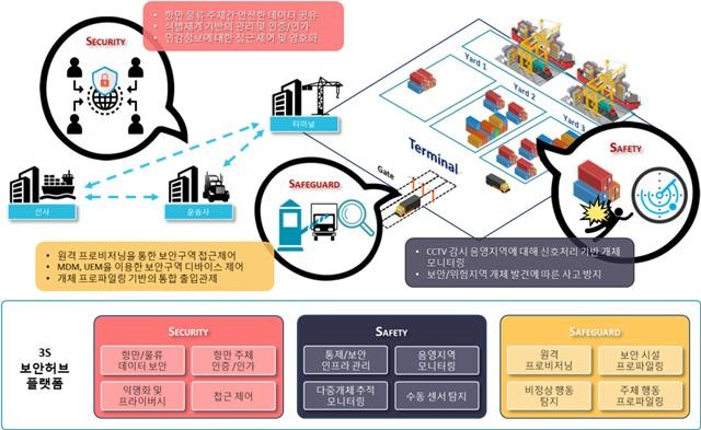 BPA, 부산대학교를 포함한 4개 기관ㆍ기업이 3년에 걸쳐 구축한“3S 보안허브 플랫폼”은 부산항 인프라 및 데이터에 대한 3S*를 강화하여, 항만의 보안성과 효율성을 증대시키는 것을 목적으로 개발되었다.