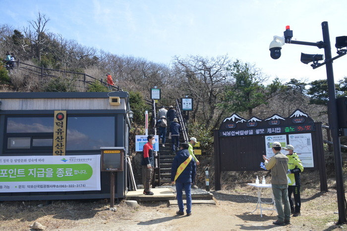 이날 캠페인에는 부영그룹 무주덕유산리조트‧덕유산국립공원 직원 등 약 30여명이 모여 산행 중 화기물 소지 및 흡연금지 안내에 대한 홍보물을 배포하며 산불 발생 예방에 나섰다.