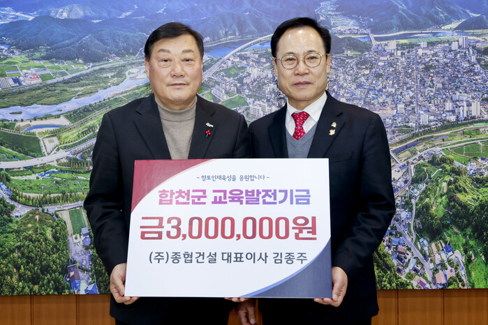 한편 김종주 대표는 초계면 교촌 출신으로 대한전문건설협회 경상남도 회장을 맡고 있으며 교육발전기금뿐만 아니라 아동복지기금 등을 기탁하며 지속적으로 지역의 사회공헌활동을 펼치고 있다.