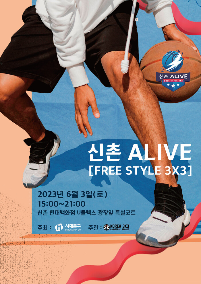 [시민일보 = 홍덕표 기자] 서울 서대문구(구청장 이성헌)는 3일 오후 3~9시 신촌 연세로 특설 코트에서 'Alive 신촌! 프리스타일 3대3 길거리 농구대회'를 개최한다고 밝혔다.