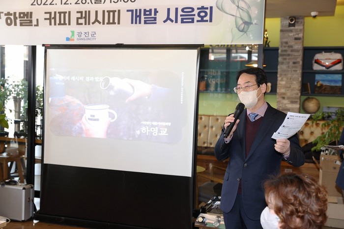 [강진=정찬남 기자] 전남 강진군은 최근 지역내 카페 운영자와 군청 직원 30여명이 참여한 가운데 하멜커피(가칭) 레시피 개발 시음회를 열었다.