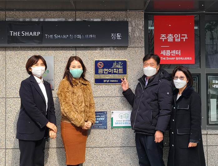 청주시 서원보건소(소장 김병성)는 간접흡연을 예방하고 담배연기 없는 쾌적한 주거환경 조성을 위해 수곡동에 위치한 ‘더샵청주퍼스트파크 아파트’를 금연아파트로 지정했다.