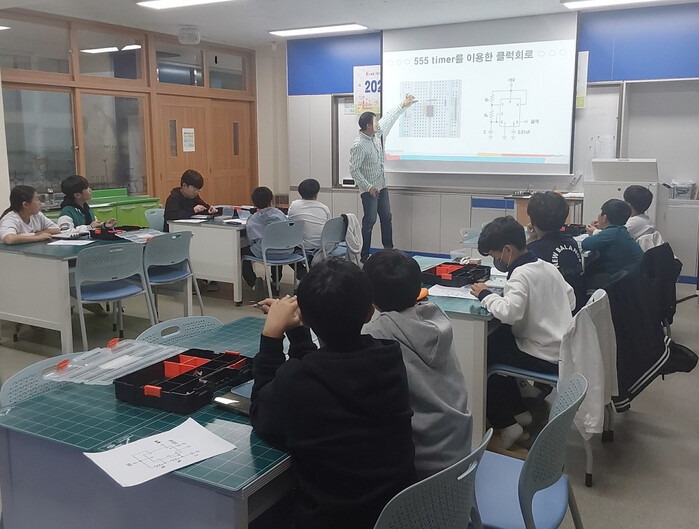 수업 주제는 ‘전기회로의 기초’, ‘나만의 카운터회로 만들기’, ‘업사이클링 발명’이며, 발명의 기초부터 발명에 대한 실습을 제공한다.