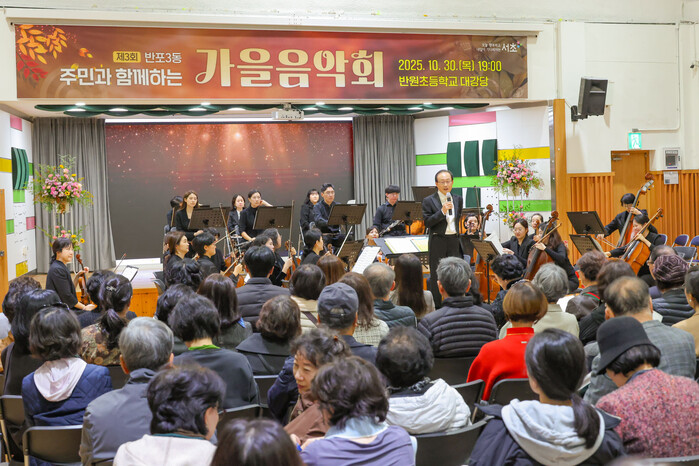 [시민일보 = 박소진 기자] 서초구(구청장 전성수)가 지난 30일 오후 7시 반원초등학교 대강당에서 ‘제3회 반포3동 주민과 함께하는 가을음악회, 지휘자의 해설과 함께하는 클래식 공연’을 개최했다고 밝혔다.