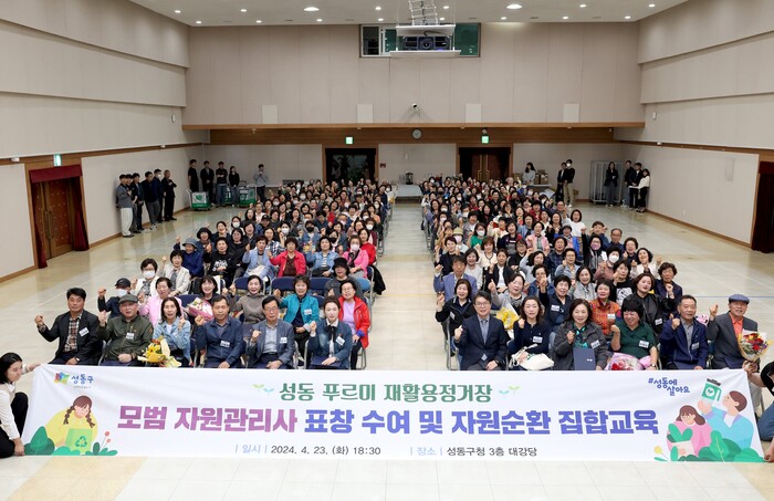 [시민일보 = 변은선 기자] 서울 성동구(구청장 정원오)는 최근 ‘성동 푸르미 재활용정거장’(이하 재활용정거장)에서 활동 중인 자원관리사를 대상으로 모범자원관리사 표창수여 및 자원순환교육을 실시하였다.