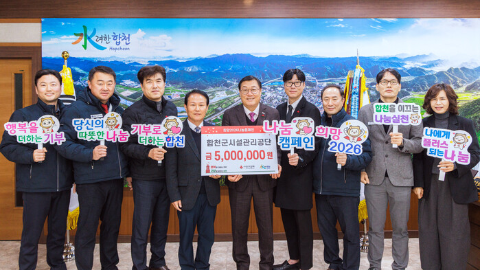 이번 성금은 경제적 어려움을 겪고 있는 관내 저소득 가구의 생활 안정과 복지 증진을 지원하기 위해 마련됐으며, 기탁된 성금은 합천군을 통해 대상 가구에 실질적인 도움이 될 수 있도록 사용될 예정이다.