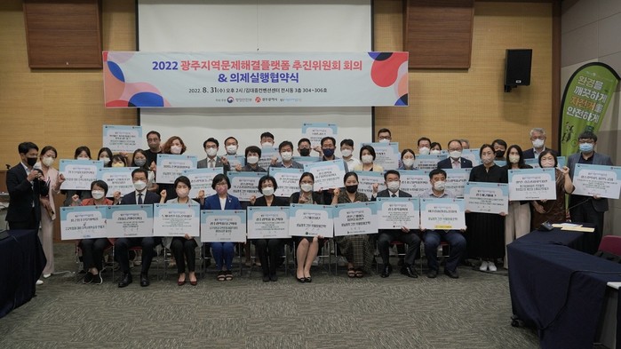 [광주=정찬남 기자] 광주광역시는 31일 김대중컨벤션센터에서 광주지역문제해결플랫폼 추진위원회를 열어 지역문제 의제에 대한 실행 방안을 논의하고 추진기관과 의제실행 협약식을 가졌다.
