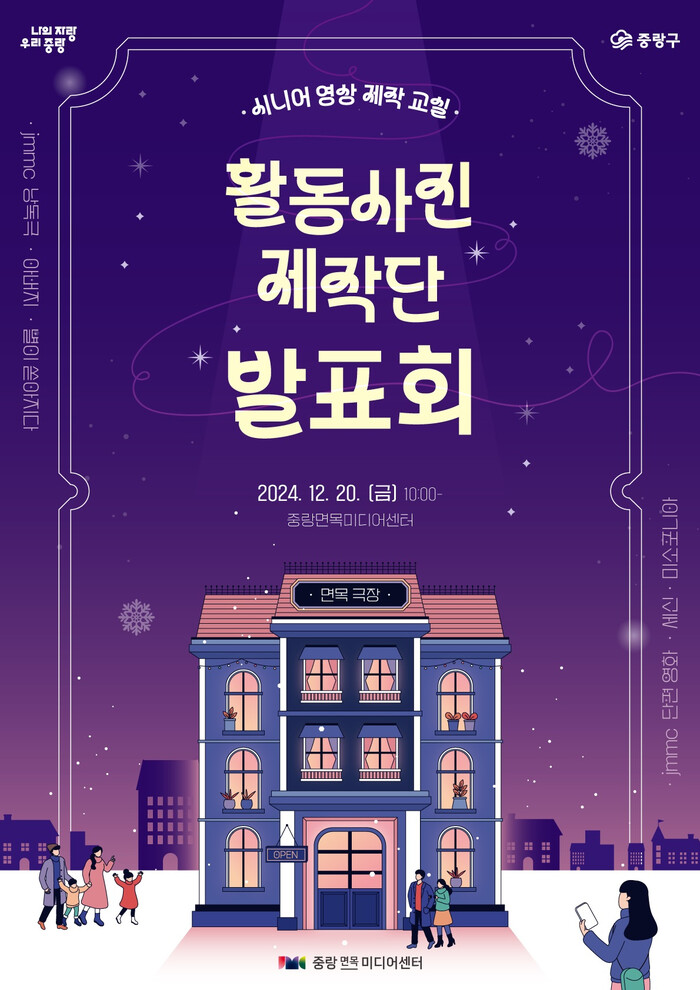 [시민일보 = 여영준 기자] 중랑구(구청장 류경기) 중랑면목미디어센터가 오는 12월20일 ‘활동사진 제작단 발표회’를 개최한다.