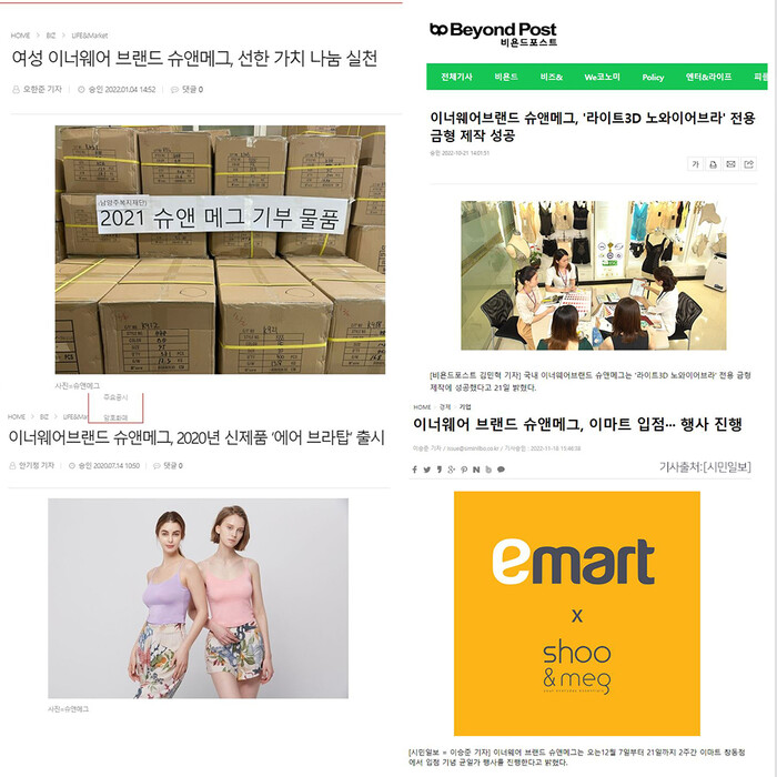 또 섬세한 브라 제작이 가능한 ‘라이트3D 노와이어브라’ 전용 금형 제작에 성공했으며, 2022년 11월에는 이마트 입점 등으로 오프라인까지 판로를 넓히며 온오프라인 언더웨어 브랜드로서의 입지를 다지고 있다.