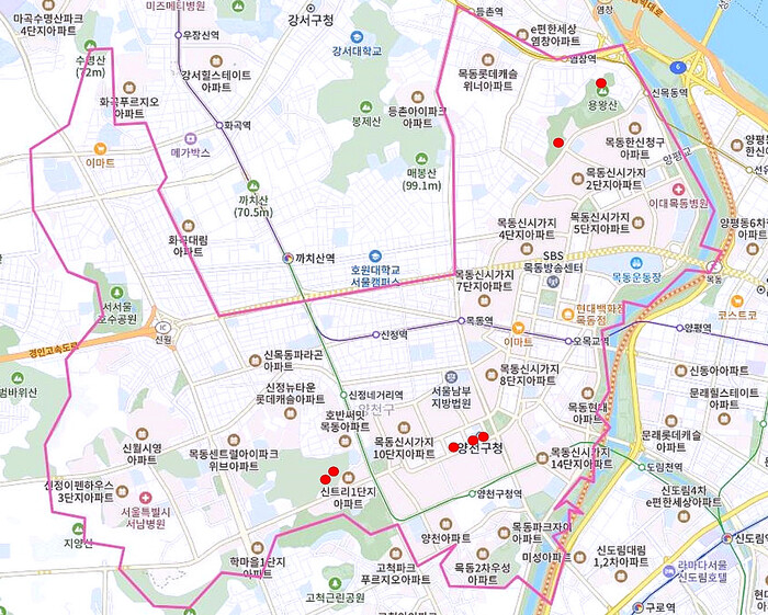 | ▲ 신규 공공와이파이가 설치될 음영지역(신호 약한 곳) 7곳 대상지 현황도. (자료=양천구청 제공) |