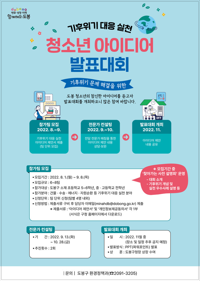 | ▲ 기후위기 대응 실천 청소년 아이디어 발표대회 홍보 포스터. (사진제공=도봉구청) |