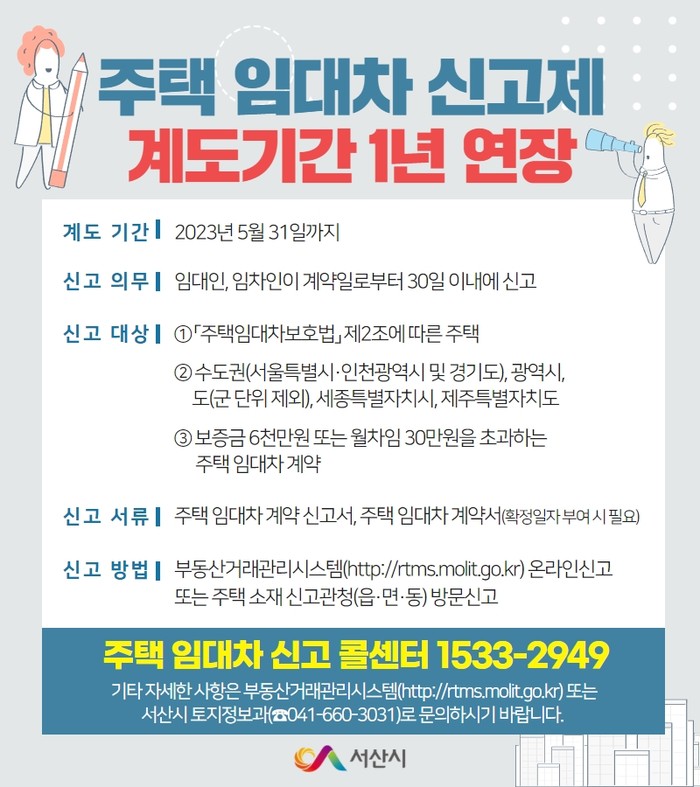 [서산=최진우 기자] 충남 서산시가 주택 임대차 신고제 계도기간을 연장한다고 31일 밝혔다.