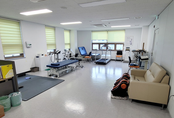 치료실에는 트레드밀, 상하지 운동기구 등의 운동기구를 비롯해 하지 마사지기와 파라핀베스 등이 설치돼 있어 다양한 재활운동치료가 가능하다.