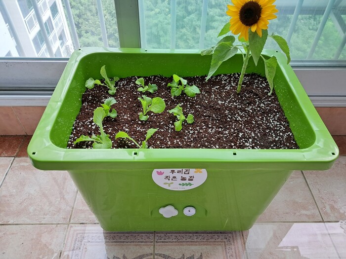 상자텃밭은 재배 용기와 상토 50L, 상추 모종 8본, 재배 방법 등으로 구성됐다. 재배 용기에는 바퀴를 부착해 운반 및 이동의 편의성을 높였고 저면 급수 방식을 적용해 번거로움도 덜었다. 저면 급수 방식이란 화분 밑면의 배수공에 스며든 물이 위로 올라가게 도와 작물에 물을 대는 방식으로, 매일 물을 주며 관리하지 않아도 된다는 장점이 있다.