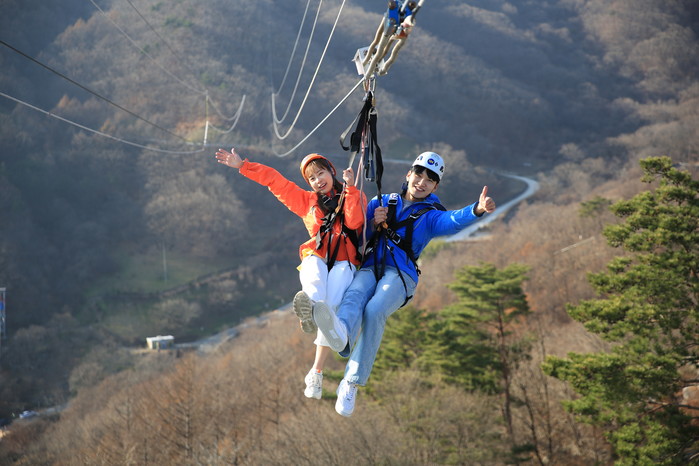 해발고도 1,228m, 대봉산 정상 부근에서 내리 꽂는 5개코스 3.27km의 자유비행방식 국내 최장·최고도 함양 대봉산휴양밸리 집라인이 2월 16일 전면 개장을 앞두고 있다.