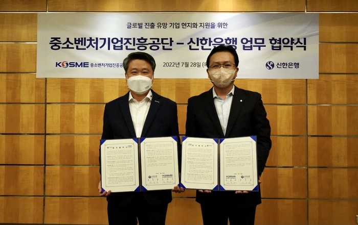 [시민일보 = 이대우 기자] 신한은행(은행장 진옥동)은 중소벤처기업진흥공단과 글로벌 진출 유망 중소벤처기업의 스케일업 및 현지화 지원을 위한 업무협약을 체결했다.
