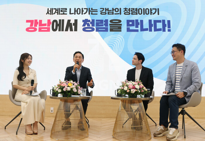 | ▲ 출연진들과 함께 이야기를 나누고 있는 조성명 강남구청장 (왼쪽 2번째) (사진=강남구청 제공) |