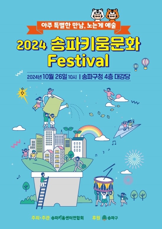 [시민일보 = 이대우 기자] 서울 송파구(구청장 서강석)가 오는 26일 송파구청 대강당에서 오전 10시부터 지역내 19개 송파키움센터를 이용하는 어린이들의 발표회 ‘송파 키움문화 페스티벌’을 개최한다.