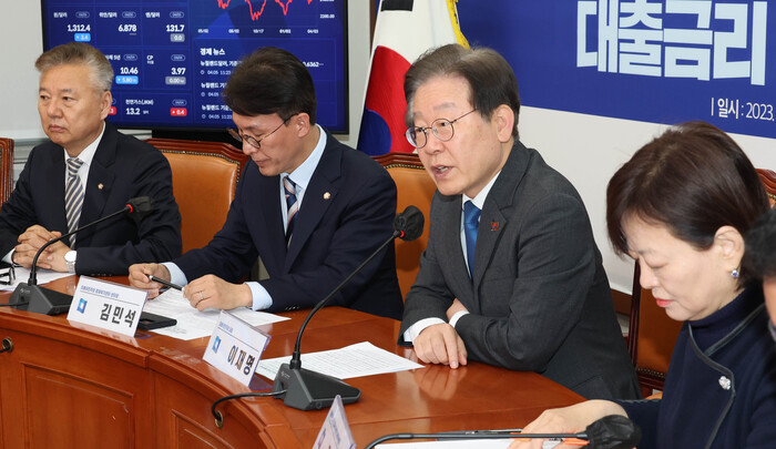 이재명 대표는 5일 오전 서울 여의도 국회 본청 당대표회의실에서 열린 최고위원회의에 참석해 "부채 폭탄이 언제 터질지 모르는 위험천만한 상황"이라며 "민주당은 자영업자와 서민의 대출 부담을 낮추는 금리인하요구권을 뒷받침하는 입법 조치를 서두르겠다"고 밝혔다.