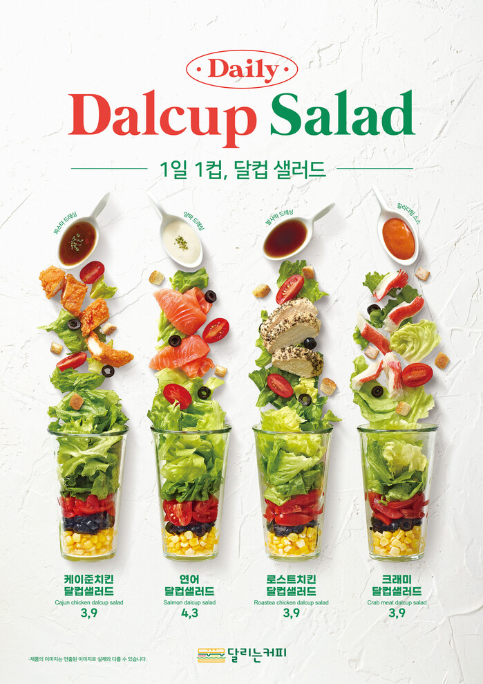 달리는커피 관계자는 “이번 신메뉴 컵샐러드는 드레싱도 깔끔하게 포장되어, 함께 나가 집에서나 야외에서도 간편하게 즐기기 쉽다”고 설명했다.