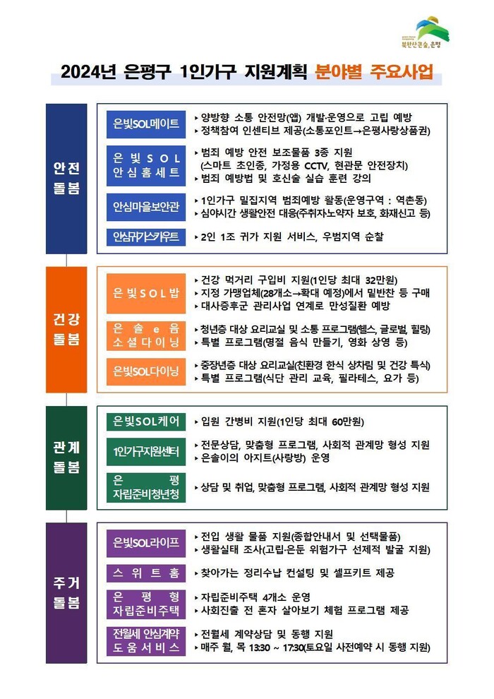 | ▲ 은평구가 2024년 1인가구 지원 시행계획을 수립하고 1인가구의 안정적 생활을 돕는다. (사진=은평구청 제공) |