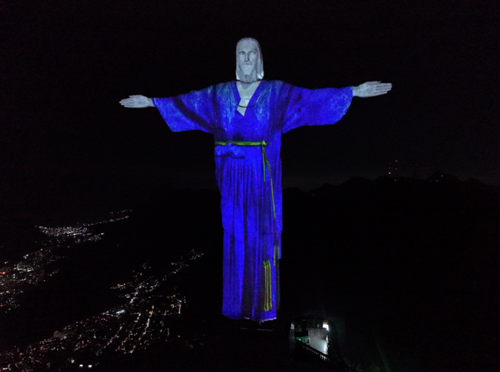 특히 예수상이 다른 나라의 전통 의상을 입은 것은 처음으로 그 의미가 남다르다.예수상은 한국의 오방색과 브라질 국기의 색상을 상징하는 청색 철릭 도포를 입었으며, 투사된 한복은 진주시가 제작 지원하고 지난 5월 철도문화공원 차량정비고에서 전시한 바 있는 드라마 <연인>에서 남자 주인공 남궁 민씨가 입었던 것으로 진주실크 홍보대사 이진희 한국예술종합학교 교수의 작품이다.