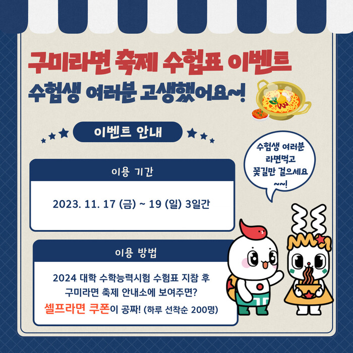 구미라면 축제의 보다 자세한 내용은 축제 공식 누리집 ‘구미라면.com’을 방문하면 된다.