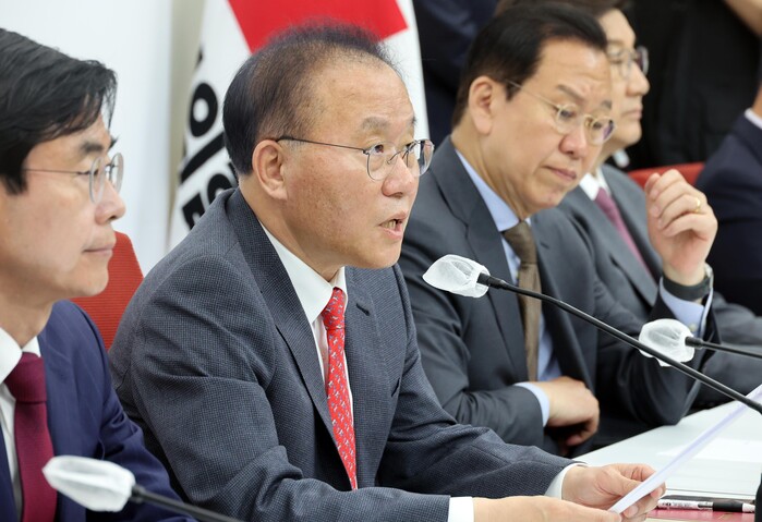 이런 가운데 이날 국회에서 4선 이상 중진 당선인 간담회를 주재한 윤재옥 원내대표 겸 당대표 권한대행은 16일 당선자 총회를 통해 당 체제 정비 방향을 최종적으로 결정하겠다"고 밝혔다.