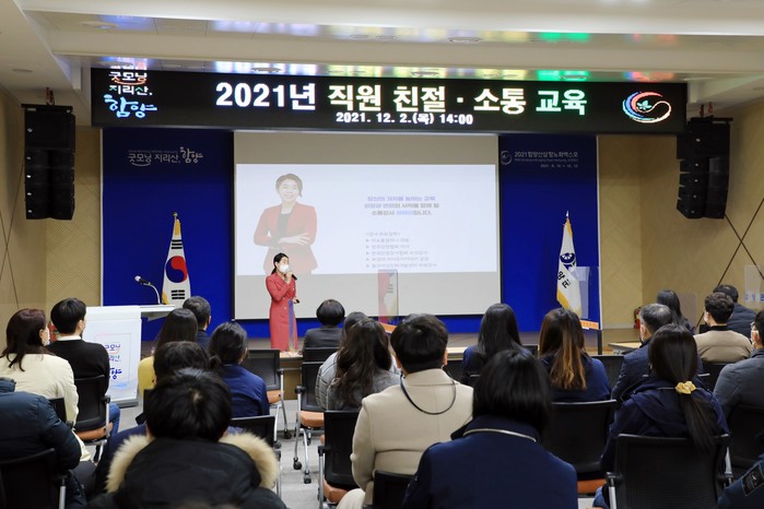함양군은 2일 오후 군민과 소통하고 매너를 실천하며, 공감할수 있는 친절행정을 실천하기 위해 ‘2021년 친절·소통행정 직원교육’을 실시했다.
