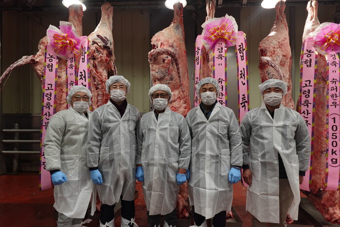 이번에 출하된 슈퍼한우의 생체중은 각 1,247kg, 1,100kg, 1,050kg이며, 이 중 1.2t 개체는 육질등급 1++, 근내지방도 9(3)등급, 등심단면적 158㎠, 육량지수 63.4%를 기록해 최근 고령축산물공판장에서 도축된 슈퍼한우 중 ‘최고’라는 수식어를 부여 받았았다. 이 한우들은 공판장에서 총 4,867만원에 낙찰돼 판매됐다.