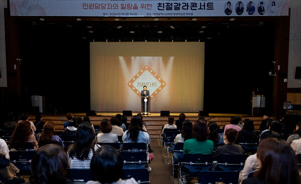 이어진 ‘새로운 친절 트렌드’를 주제로 한 전문 강사의 강연을 통해 참석자들이 친절의 의미를 되새기고 실천할 수 있는 유익한 시간을 가졌다. 이번 콘서트는 민원 업무 담당자들이 스트레스를 해소하고, 앞으로의 업무에서 더 나은 친절을 실천할 수 있는 동기를 부여하는 기회가 됐다.