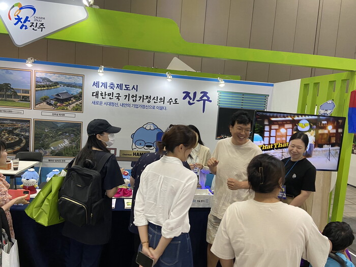 진주시는 이번 박람회에서 오는 10월 8일부터 22일까지 개최되는 진주시의 대표 축제인 ‘남강유등축제’와 ‘개천예술제’, ‘코리아드라마페스티벌’을 집중 홍보하였으며, 지난 7월 ‘K-기업가정신 진주 국제포럼’ 개최로 전 세계에 K-기업가정신을 알렸던 ‘진주 K-기업가정신센터’ 등 진주시만의 특색 있는 관광자원을 홍보했다.