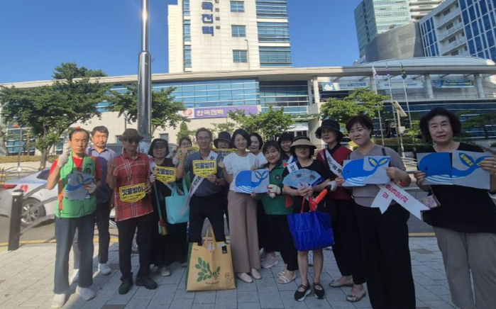 이날 참여자들은 지역 내 빗물받이 주변을 청소하고, 무단투기 예방 표어가 있는 노면스티커를 빗물받이 주변에 부착했다.