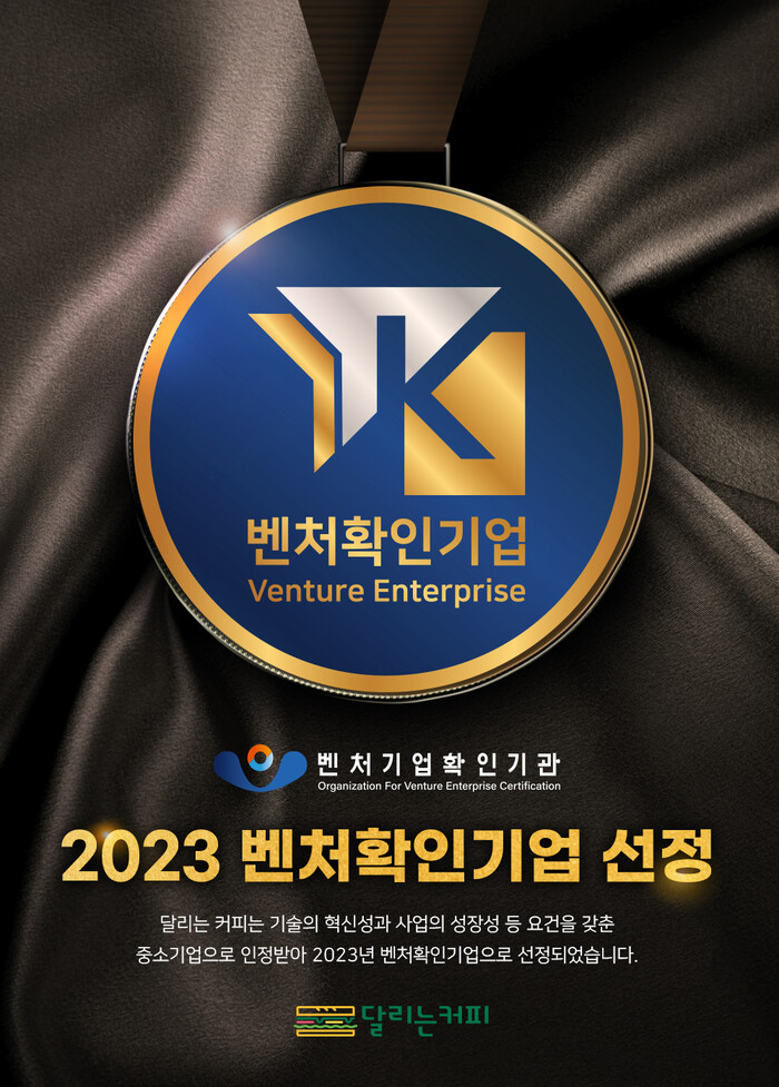 한편, 이번 벤처기업확인기업으로 선정된 달리는 커피는 샌드위치&샐러드 전문 브랜드로, 바쁜 직장인들에게 간편하고 건강한 한 끼 식사와 커피 한잔의 여유를 어디로든 간편하게 배달하겠다는 아이디어에서 시작하여, 현재는 가맹 350호점을 돌파하는 등 많은 소비자들의 선택을 받고 있다.