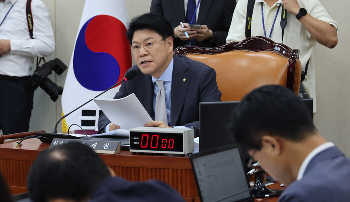 장 위원장은 모두발언에서 "제가 직권으로 회의를 개의한 것은 과방위를 하루빨리 정상화기 위한 위원장으로서의 결단이었다"며 "(여야 간사 합의 시) 민주당의 마지막 제안은 7월 31일 전체회의, 8월 17일 공청회, 8월 25일 1·2소위 회의였는데 도대체 왜 한 달 뒤에 공청회를 해야 하고 왜 한 달 뒤에 소위를 열어야 하나. 그렇게 한가한가"라고 목소리를 높였다.
