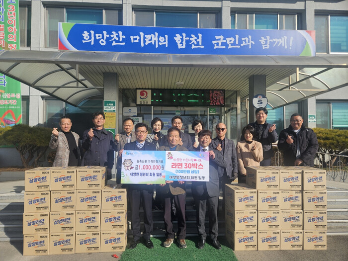 대양면청년회는 이어 대양면노인회분회(분회장 나석규) 소속 덕정리할아버지경로당(회장 이민택)등 28개 경로당에 라면 30박스를 전달했다. 이번 기탁은 대양면청년회가 지역사회의 경제안정과 이웃사랑을 실천하기 위한 노력의 일환으로 마련되었으며 청년회원들의 자발적인 참여와 정성이 더해져 더욱 의미를 더했다.