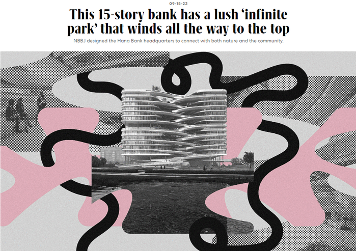 하나금융그룹 관계자는 “최고의 명성을 자랑하는 이번 '2022 디자인 혁신상'에서 1위에 선정됨으로써 청라 그룹헤드쿼터 디자인의 우수성을 다시 한번 공인받게 돼 기쁘다”며, “혁신적이고 창의적인 디자인의 청라 그룹헤드쿼터는 직원들에게 상상력을 불러일으킬 수 있는 공간으로 오는 2025년 말 준공될 예정”이라고 밝혔다.