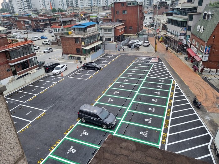 이번 주차장 재편 역시 효과적인 공간 활용을 고민한 구의 결정으로 이뤄졌다. 우선, 공터와 주차장을 들쭉날쭉하게 나누던 울타리를 철거해 널찍한 공터로 일원화하고, 부지 전체를 내구성 좋은 아스콘으로 깔끔히 포장했다. 기존 거주자우선주차장 21면은 한데 모아 재배치하고, 잔여 공간에는 누구나 사용할 수 있는 공유주차장 23면을 신규 조성해 공간 활용의 해법을 제시하였다.