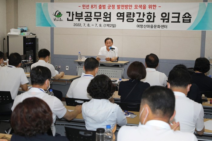 워크숍 첫날인 8일에는 리더가 가져야 할 공적 가치 기준을 확립하고 방향성을 제시하기 위한 강성수 강사의 ‘The 큰 리더십’ 강의를 시작으로 ‘민선 8기 새로운 도약’을 주제로 조 군수의 특강과 행정의 환경 변화에 따른 군정 발전방안을 모색하는 자유토론 순으로 진행됐다.