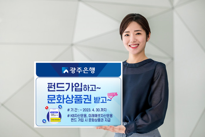 [시민일보 = 이대우 기자] 광주은행(은행장 고병일)은 오는 4월 30일까지 펀드 가입 이벤트 ‘펀드 가입하고 문화상품권 받고’를 진행한다고 밝혔다.