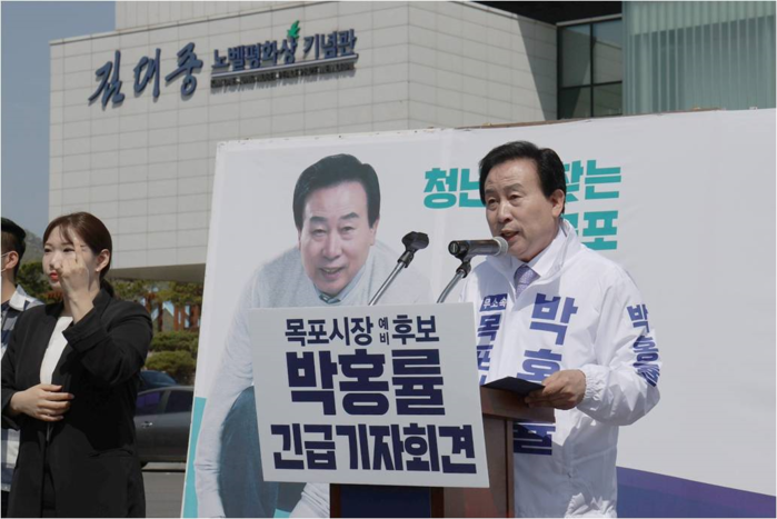 한편 이날 기자회견 자리에 함께한 박홍률 예비후보를 지지하는 박사모 회원들은 “지난 대선 때 열린민주당 최고위원으로서 이재명 후보 당선을 위해 더불어민주당과 합당에 앞장서고 누구보다 민주당 재집권을 위해 헌신한 당원을 헌신짝처럼 제명한 것은 비대위가 특정 후보의 선거공작에 동조한 꼴이 됐다”며 “민주당의 전횡에 맞서 무소속 후보로 나선 박홍률 예비후보를 반드시 당선시켜 민주주의를 지키고 목포를 사랑하는 시민들의 힘을 보여주겠다”고 밝혔다.