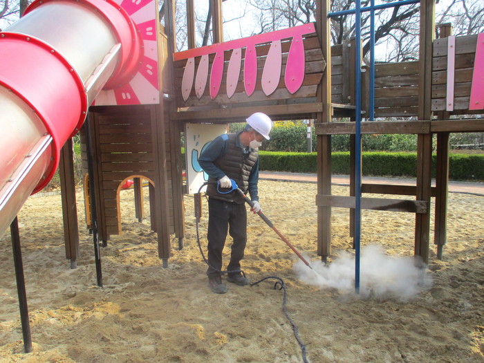 또한 면역력이 약한 어린이들을 위해 지역 전체 공원 내 모래놀이터의 정기적인 청소(일 2회)와 일광소독(주 2회), 전문장비를 이용한 소독(월 1회)을 이어오고 있다는 게 구의 설명이다.