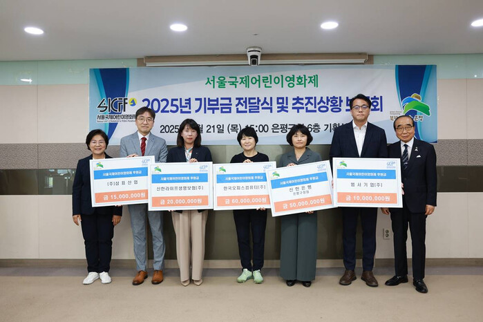 이날 후원금 전달식을 통해 ▲한국오피스컴퓨터(주) 6000만원 ▲신한은행 은평구청지점 5000만원 ▲신한라이프생명보험(주) 2000만원 ▲(주)삼표산업 1500만원 ▲범서기업(주) 1000만원의 후원금은 서울국제어린이영화제에 전달됐다.