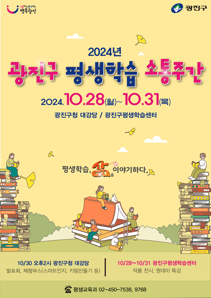 [시민일보 = 여영준 기자] 서울 광진구(구청장 김경호)가 오는 28~31일 4일간 구청 대강당과 광진구평생학습센터에서 ‘2024 평생학습 소통주간 행사’를 연다고 밝혔다.