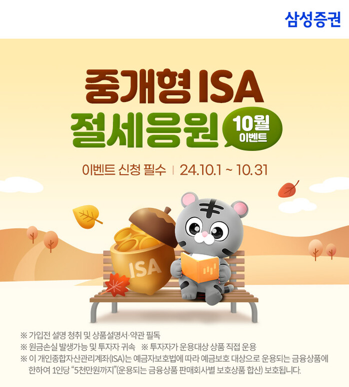 [시민일보 = 여영준 기자] 삼성증권은 중개형 ISA 계좌 보유 고객 대상으로 최대 상품권 25만원을 지급하는 이벤트를 이달 말까지 실시한다고 23일 밝혔다.