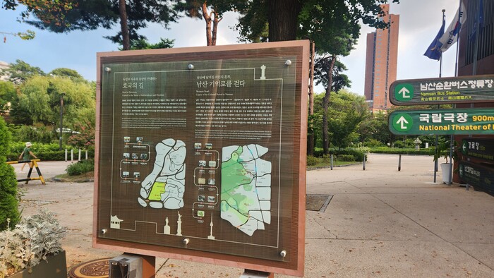 | ▲ 장충단공원 초입에 호국의 길 도보투어 안내판이 설치되어 있다. (사진=중구청 제공) |