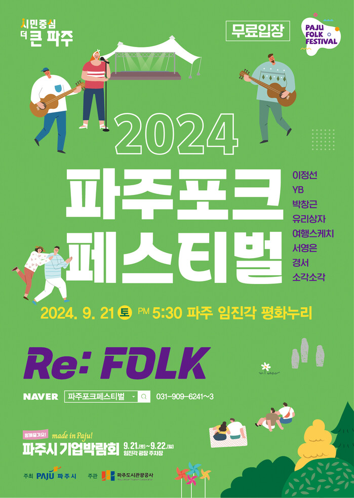파주시가 주최하고 파주도시관광공사(아래 파주공사)가 주관하는 ‘2024 파주포크페스티벌’은 올해로 제13회를 맞이한 명실상부 대한민국 대표 포크음악 축제이다. 전년도에는 20,000여 명의 관람객이 찾아 흥겨운 축제를 즐겼다. 라이브 음악을 현장에서 즐기기 위해 온 이들, 자신이 좋아하는 가수를 직접 보기 위해 온 팬들, 가족 단위로 소풍을 나온 시민들 등 다양한 이들로 붐비며 대성황을 이루었다.