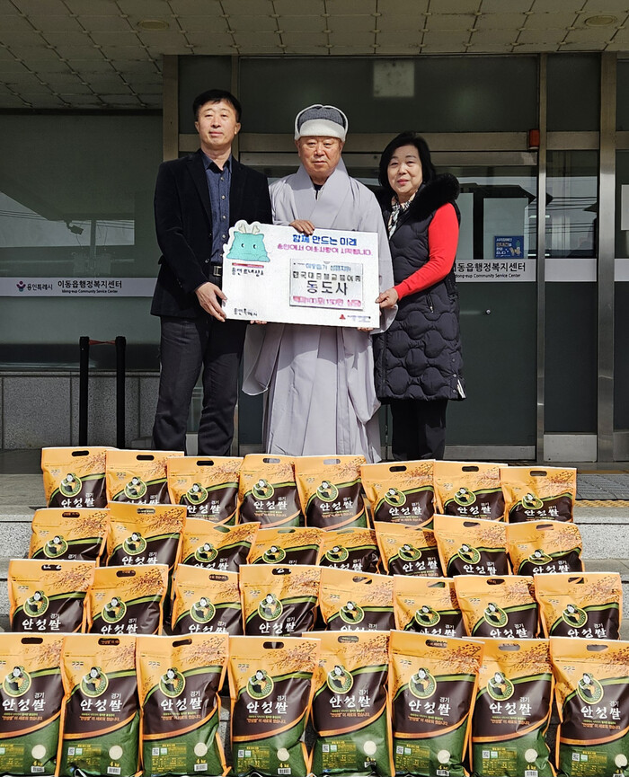처인구 이동읍에는 지난달 23일 한국대중불교불이종 동도사가 어려운 이웃을 위해 150만원 상당의 백미 400㎏을 기탁했다.